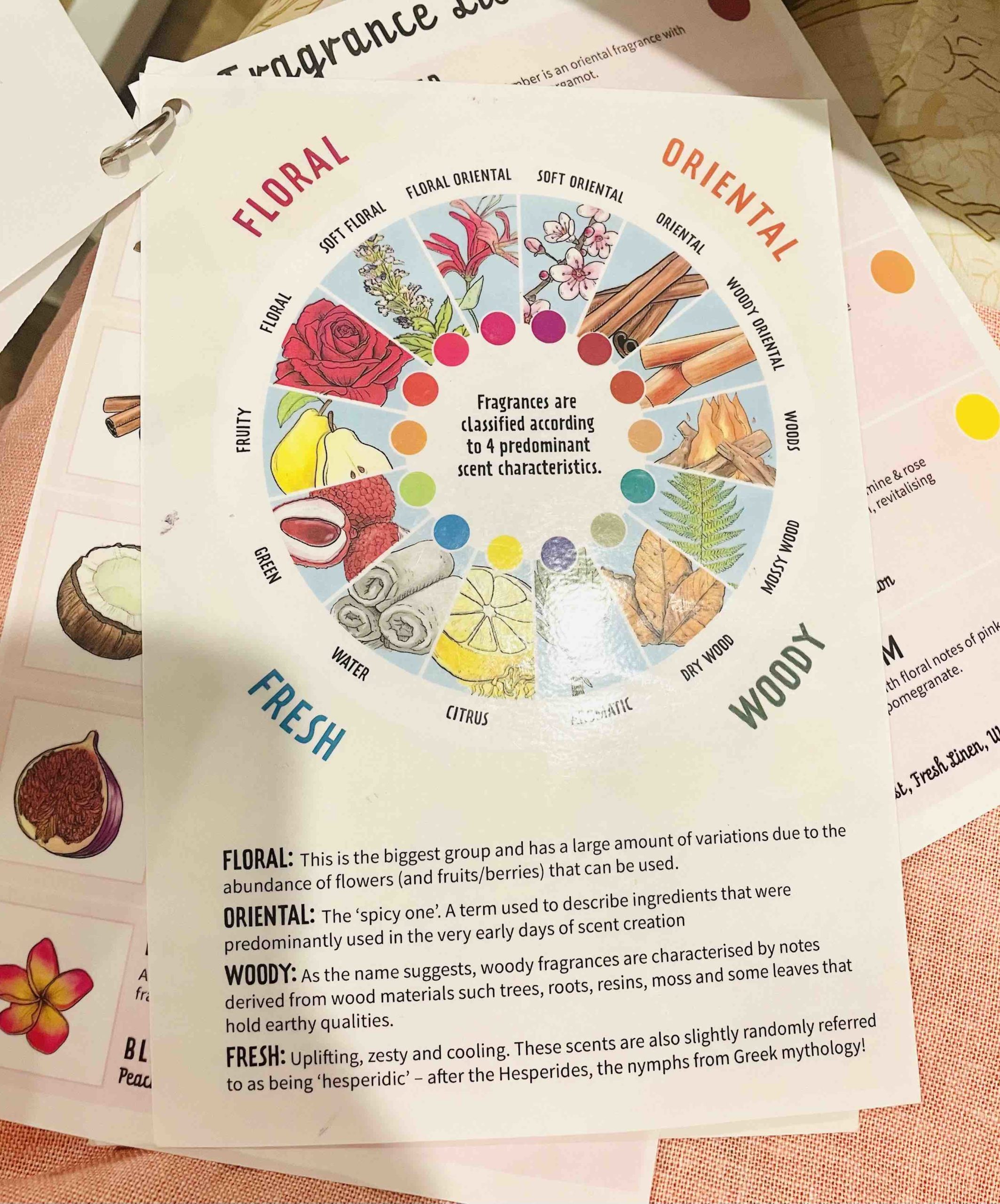 また、わたしのように香り迷子になってしまった人向けに各香りの説明・特徴、相性の良い組み合わせが書いてあるラミネートが机には置いてあります。